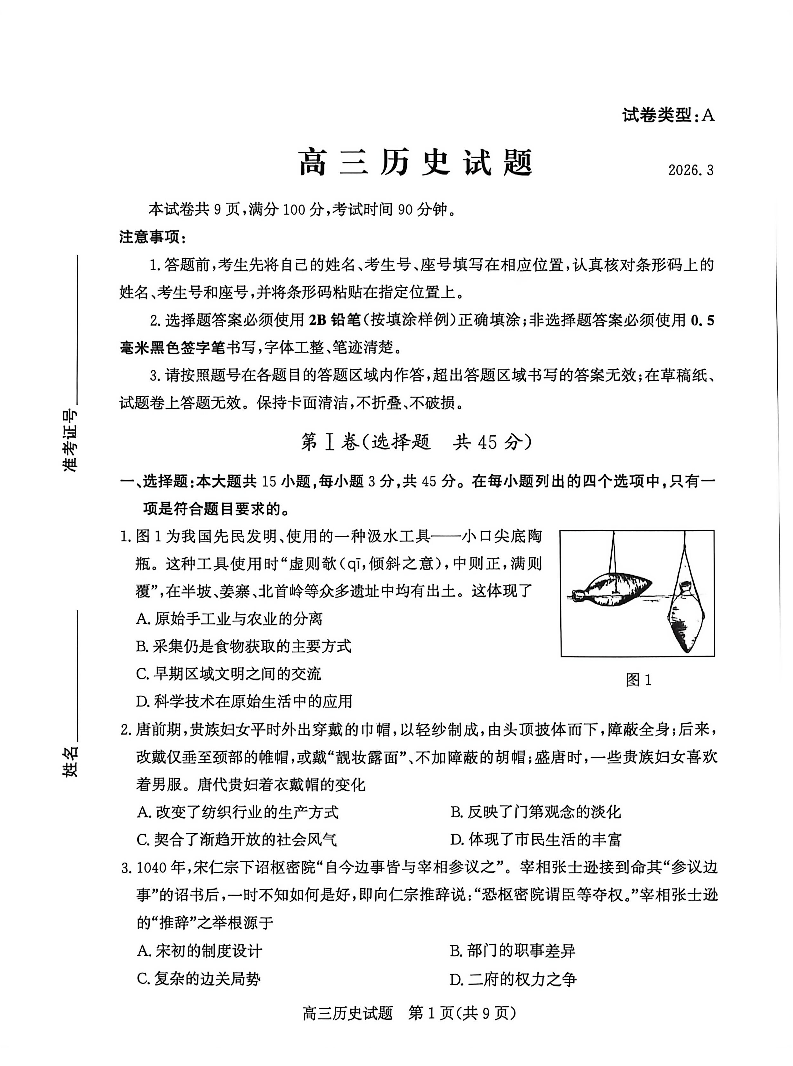 山东省滨州市2026届高三年级一模考试 历史.pdf