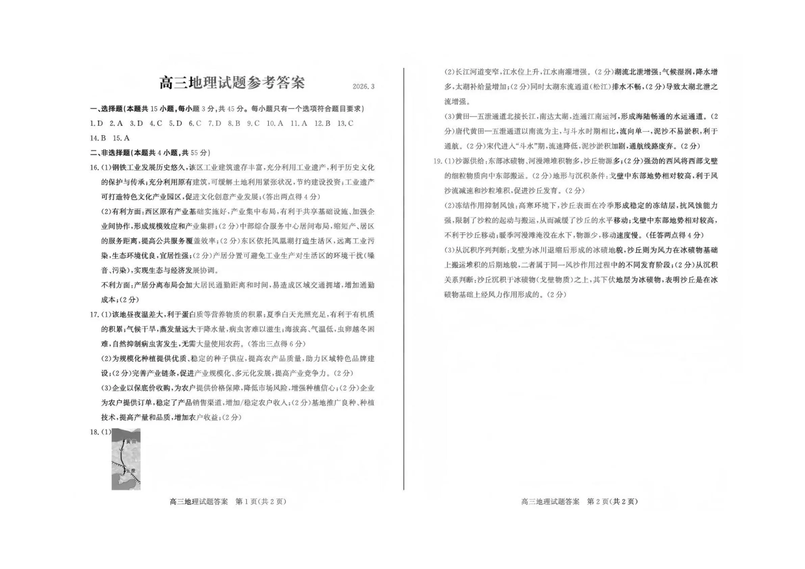 山东省滨州市2026届高三年级一模考试 地理答案.pdf