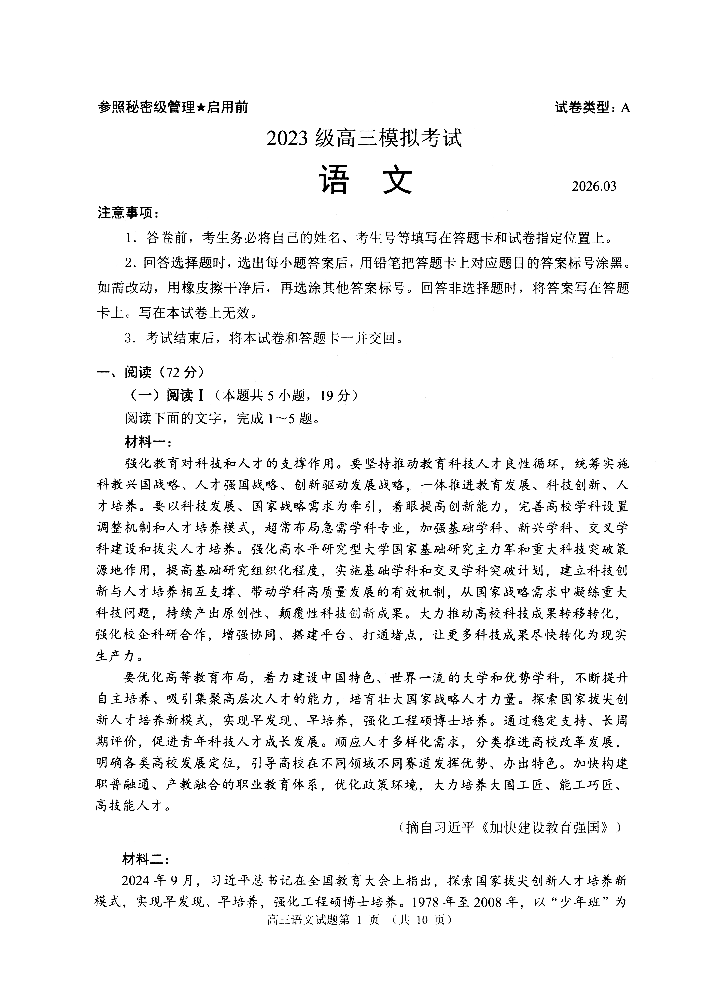 山东省日照市2023级高三模拟考试 语文.pdf