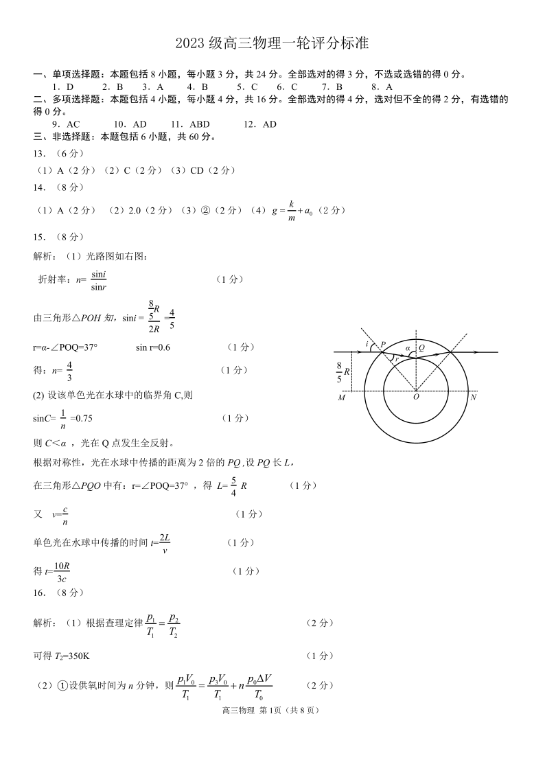 山东省日照市2023级高三模拟考试 物理答案.pdf