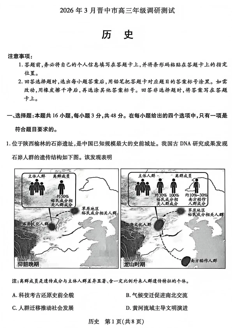 山西省晋中市2026年3月高三年级调研测试 历史.pdf