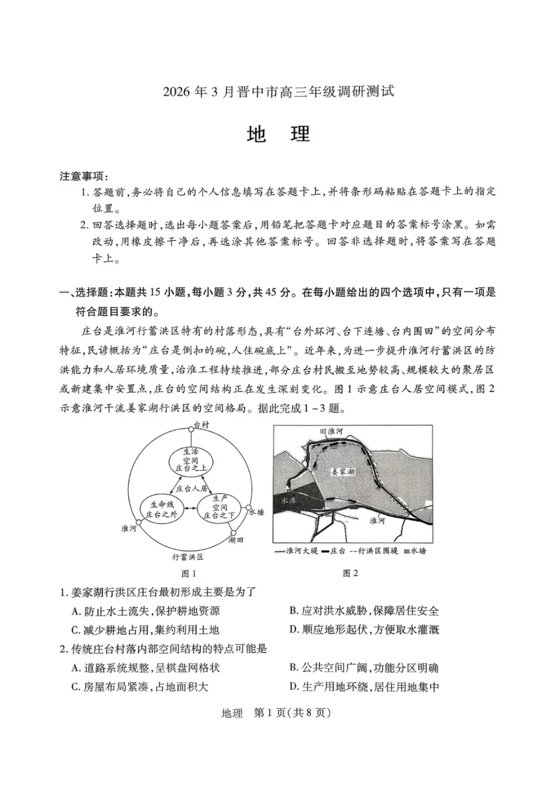 山西省晋中市2026年3月高三年级调研测试 地理.pdf
