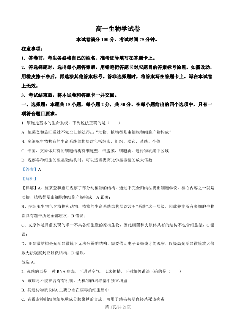 辽宁省名校联盟2026年高一下学期3月测试 生物答案.pdf