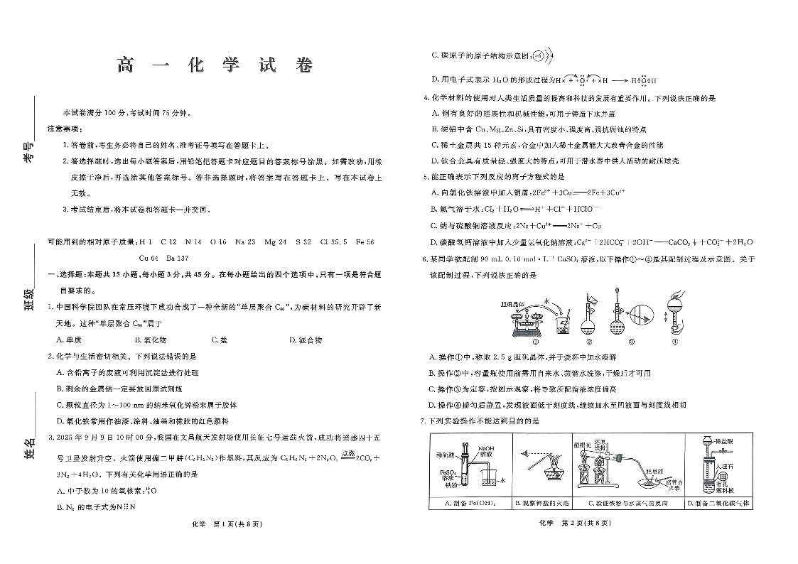 辽宁省名校联盟2026年高一下学期3月测试 化学.pdf