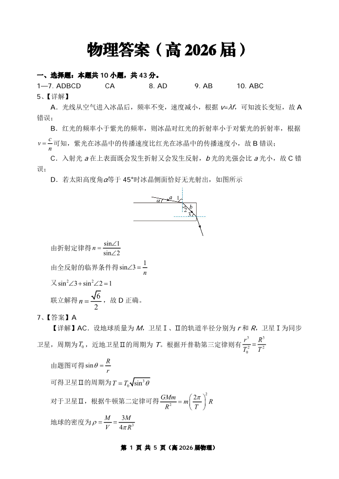 重庆名校联盟2026届高三下学期第一次联考 物理答案.pdf