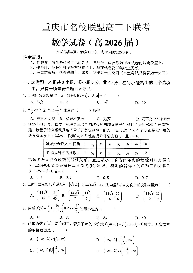 重庆名校联盟2026届高三下学期第一次联考 数学.pdf