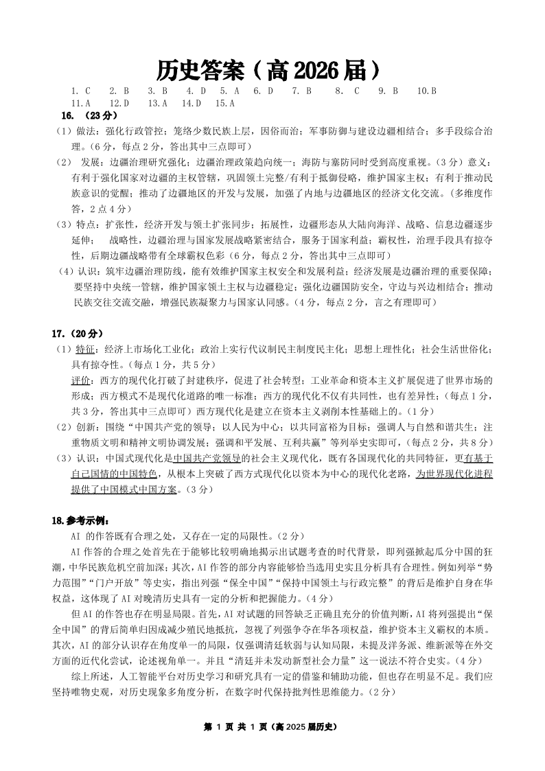 重庆名校联盟2026届高三下学期第一次联考 历史答案.pdf