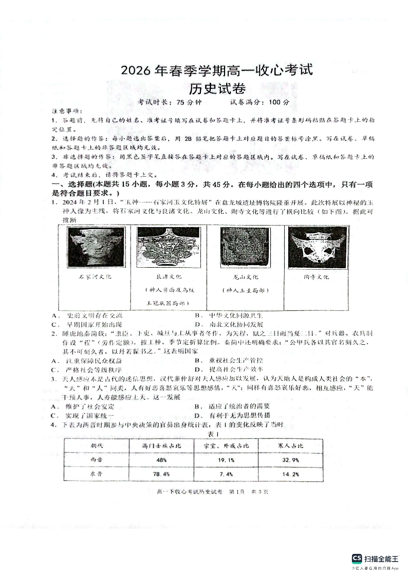 湖北省恩施高中教学联盟2025-2026学年高一下学期开学考试 历史.pdf