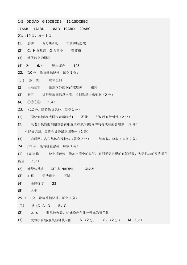 黑龙江省大庆铁人中学2025-2026学年高一下学期开学考试 生物答案.docx