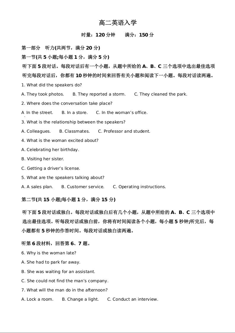 湖南省长沙市第一中学2025-2026学年高二下学期入学考试 英语.docx