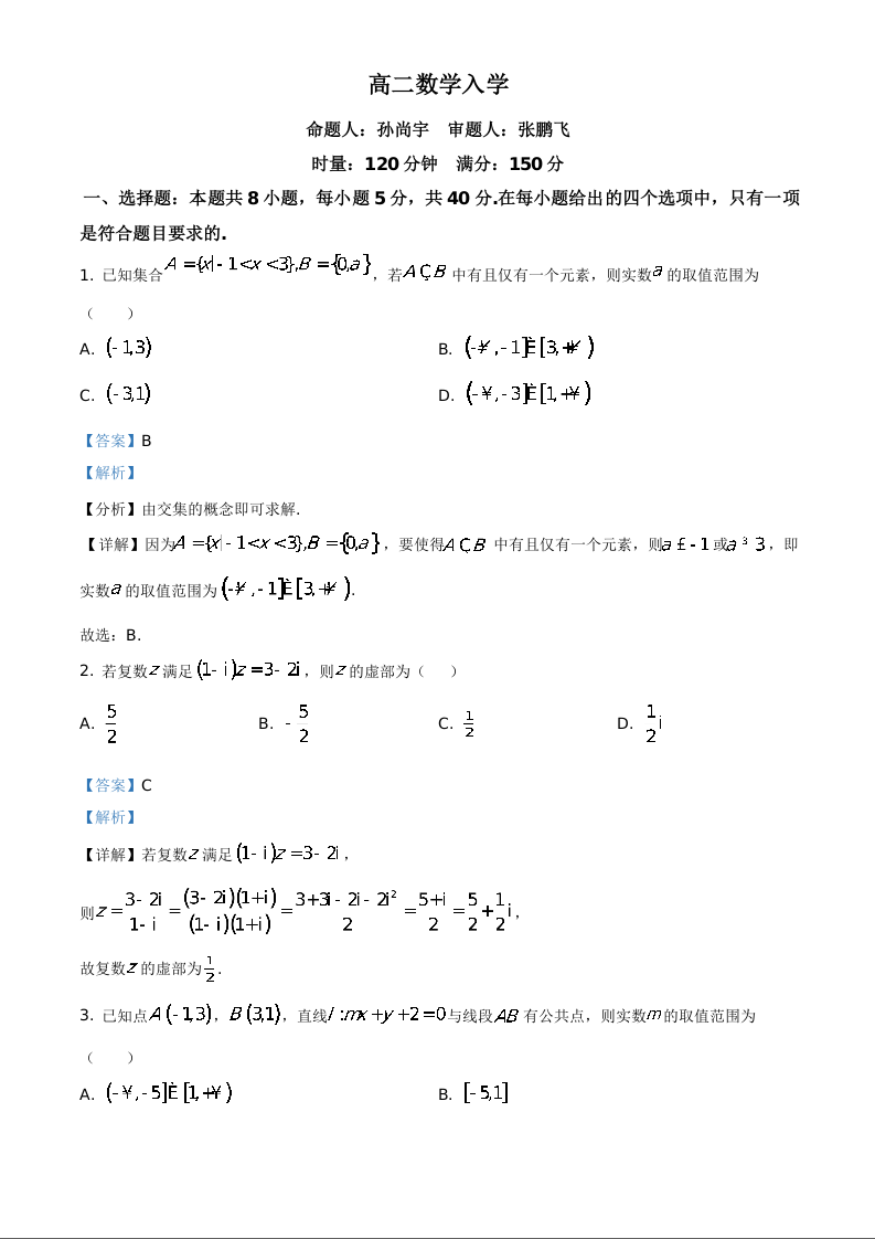 湖南省长沙市第一中学2025-2026学年高二下学期入学考试 数学答案.docx
