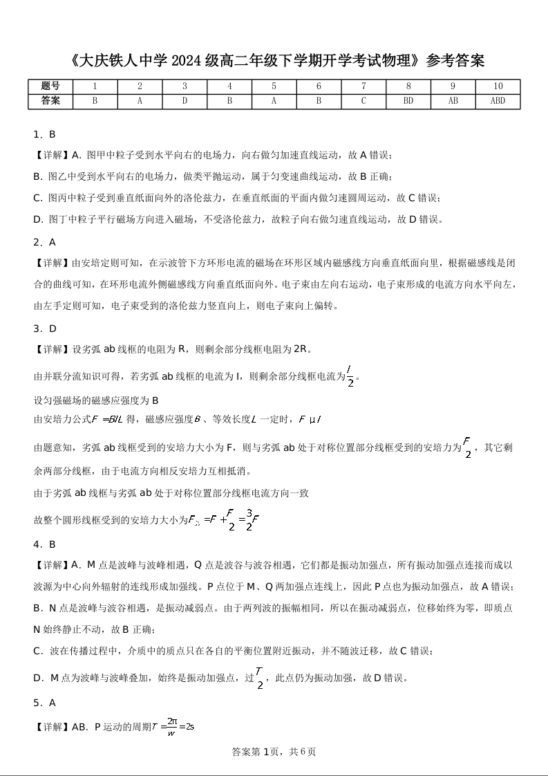黑龙江省大庆铁人中学2025-2026学年高二下学期开学考试 物理答案.docx