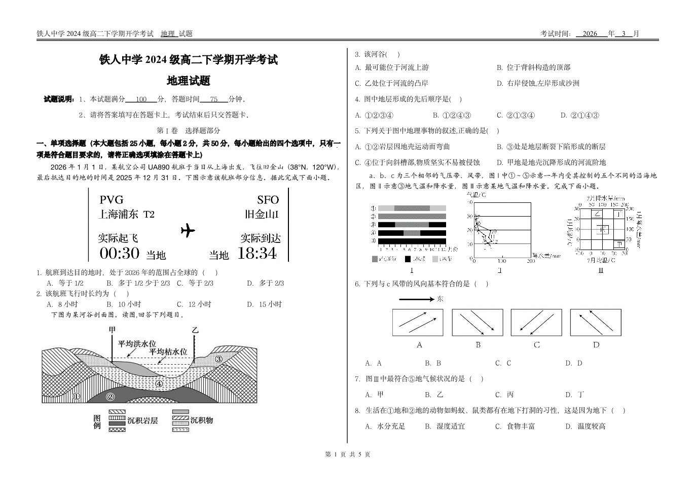 黑龙江省大庆铁人中学2025-2026学年高二下学期开学考试 地理.pdf