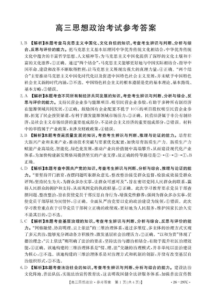 运城市2026年高考考前模拟测试 政治答案.pdf