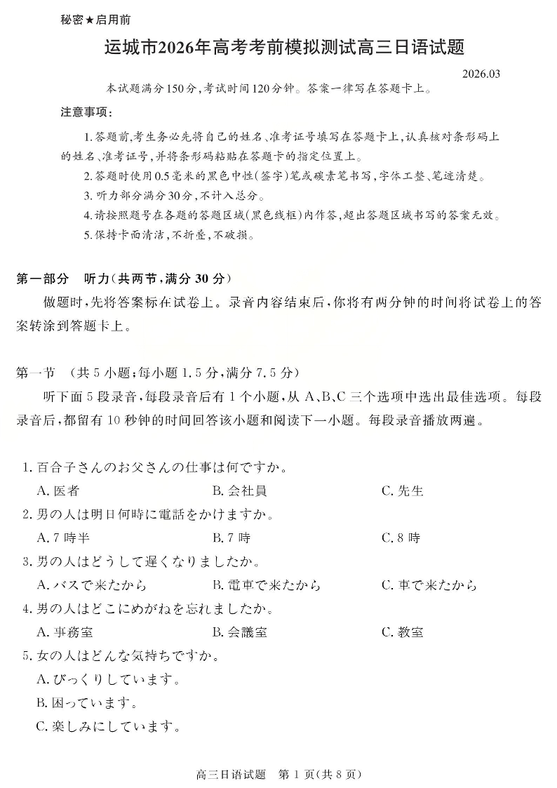 运城市2026年高考考前模拟测试 日语.pdf