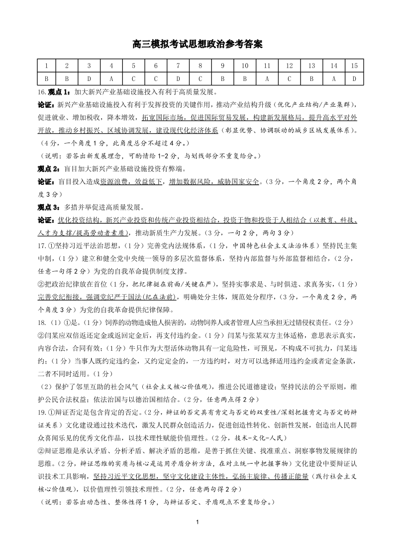 淄博市2025-2026学年度高三模拟考试 政治答案.pdf