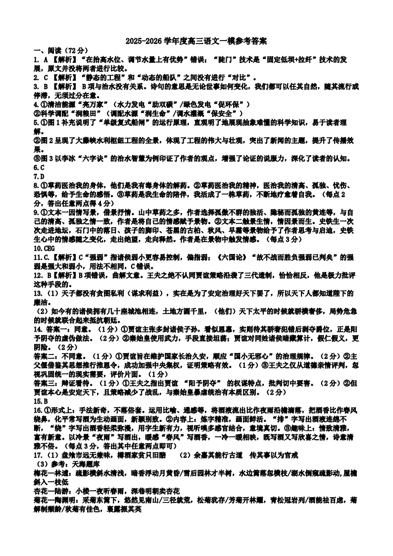 淄博市2025-2026学年度高三模拟考试 语文答案.pdf