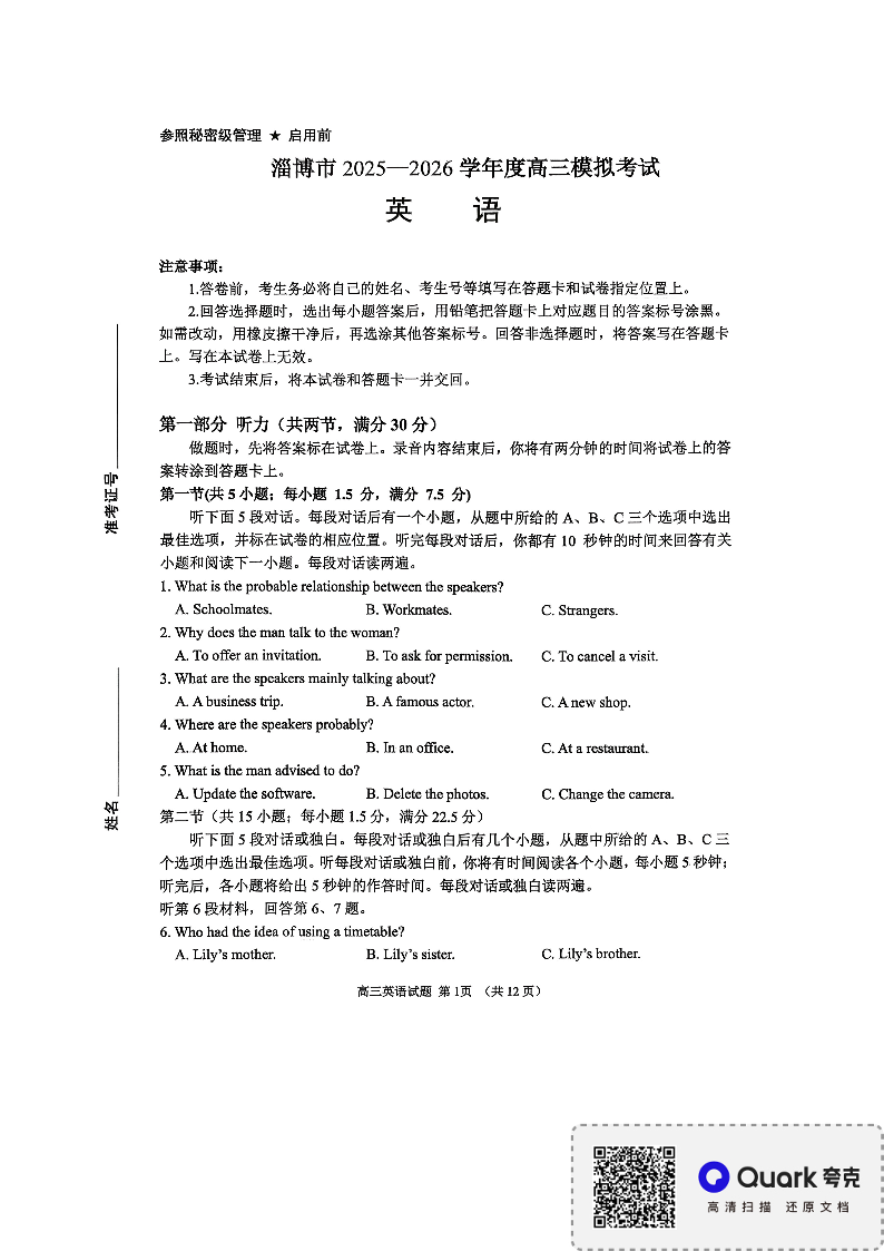 淄博市2025-2026学年度高三模拟考试 英语.pdf