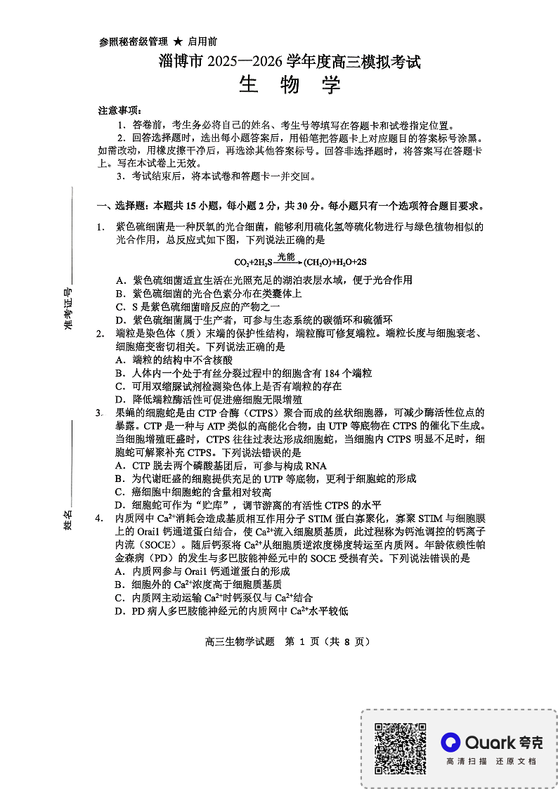 淄博市2025-2026学年度高三模拟考试 生物.pdf