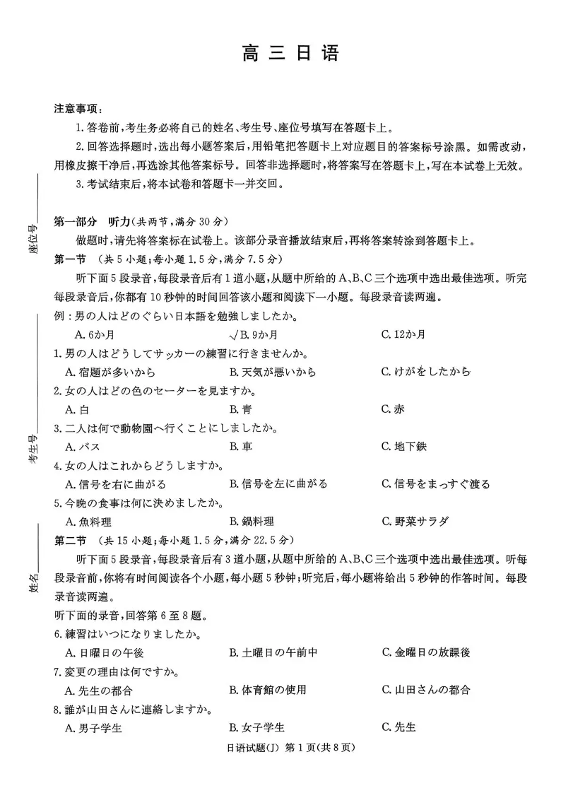 湖南省九校联盟2026届高三第二次联考(暨怀化市一模)日语.pdf