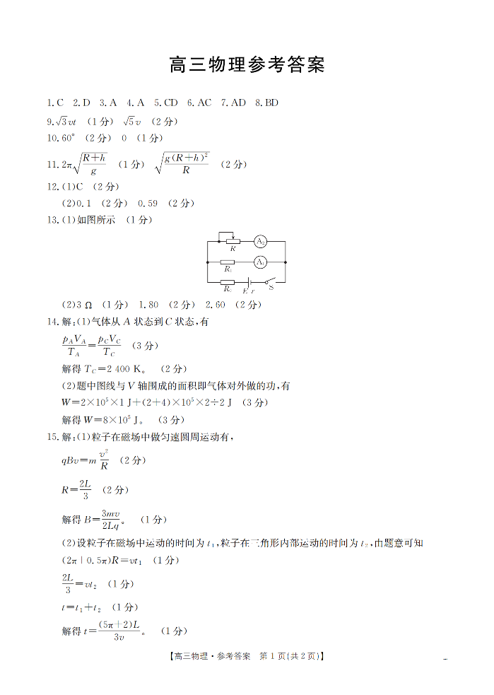 福建省2026届高三下学期2月开学联考 物理答案.pdf
