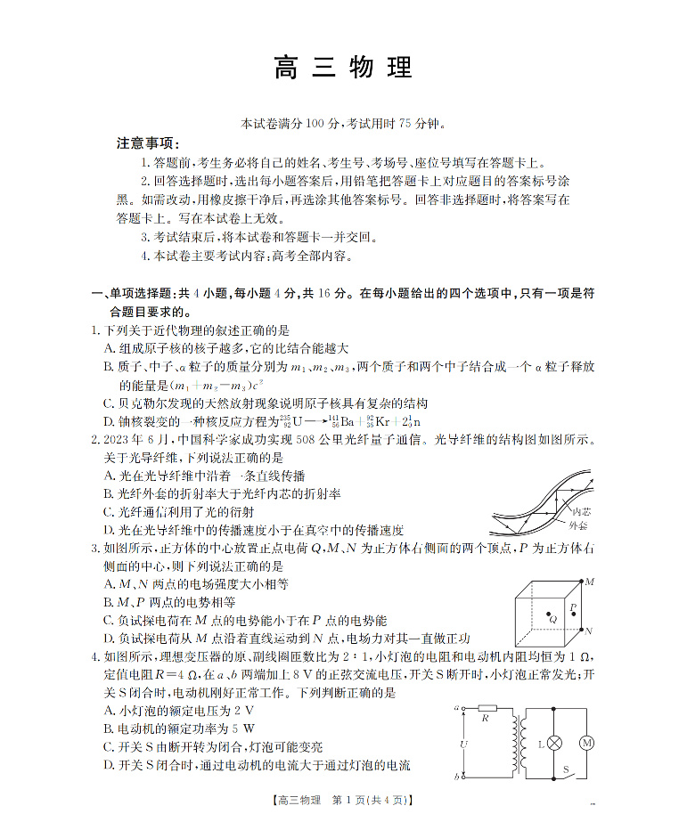 福建省2026届高三下学期2月开学联考 物理.pdf