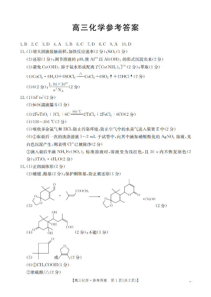 福建省2026届高三下学期2月开学联考 化学答案.pdf