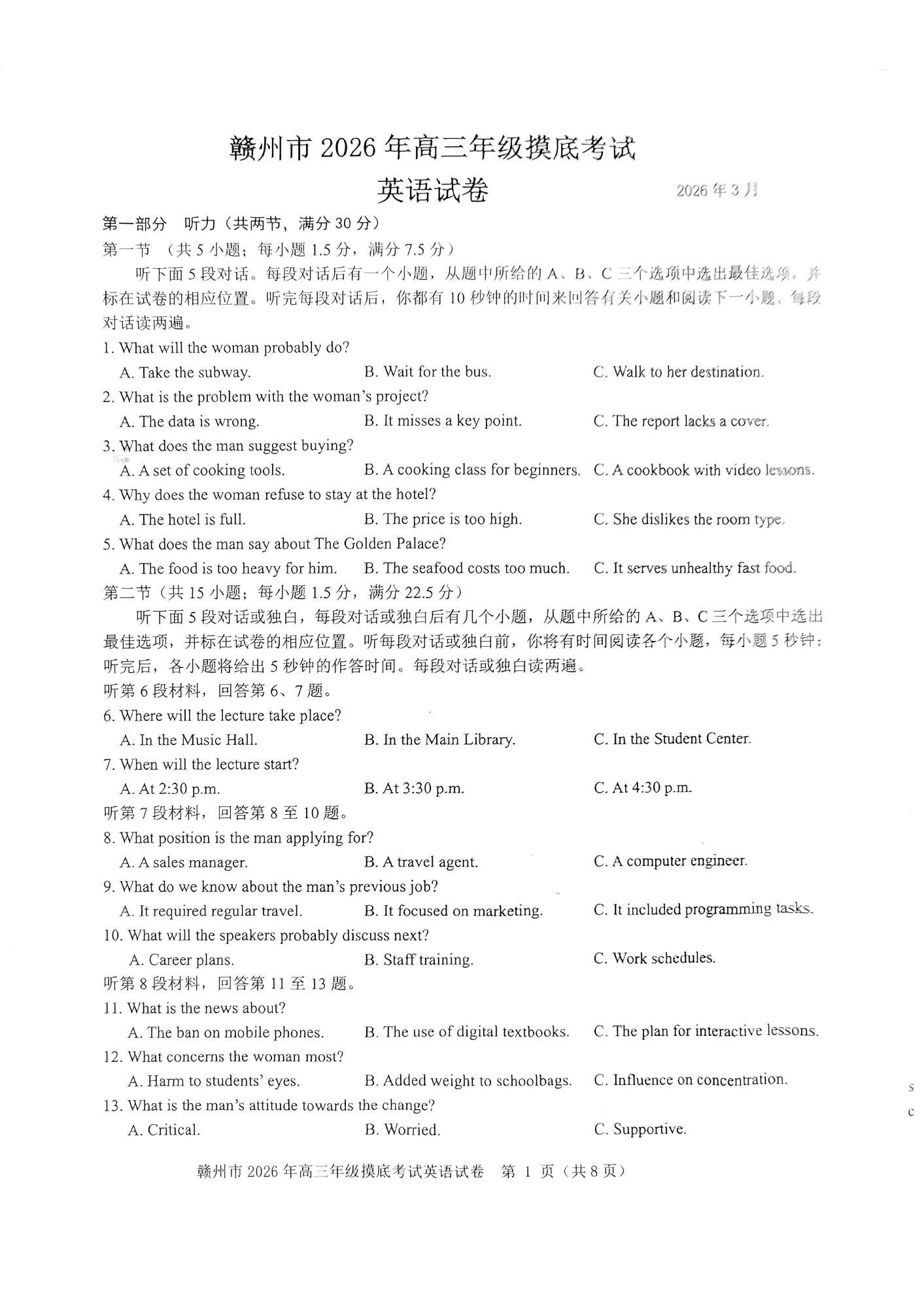 江西省赣州市2026年高三下学期3月摸底考试 英语.pdf