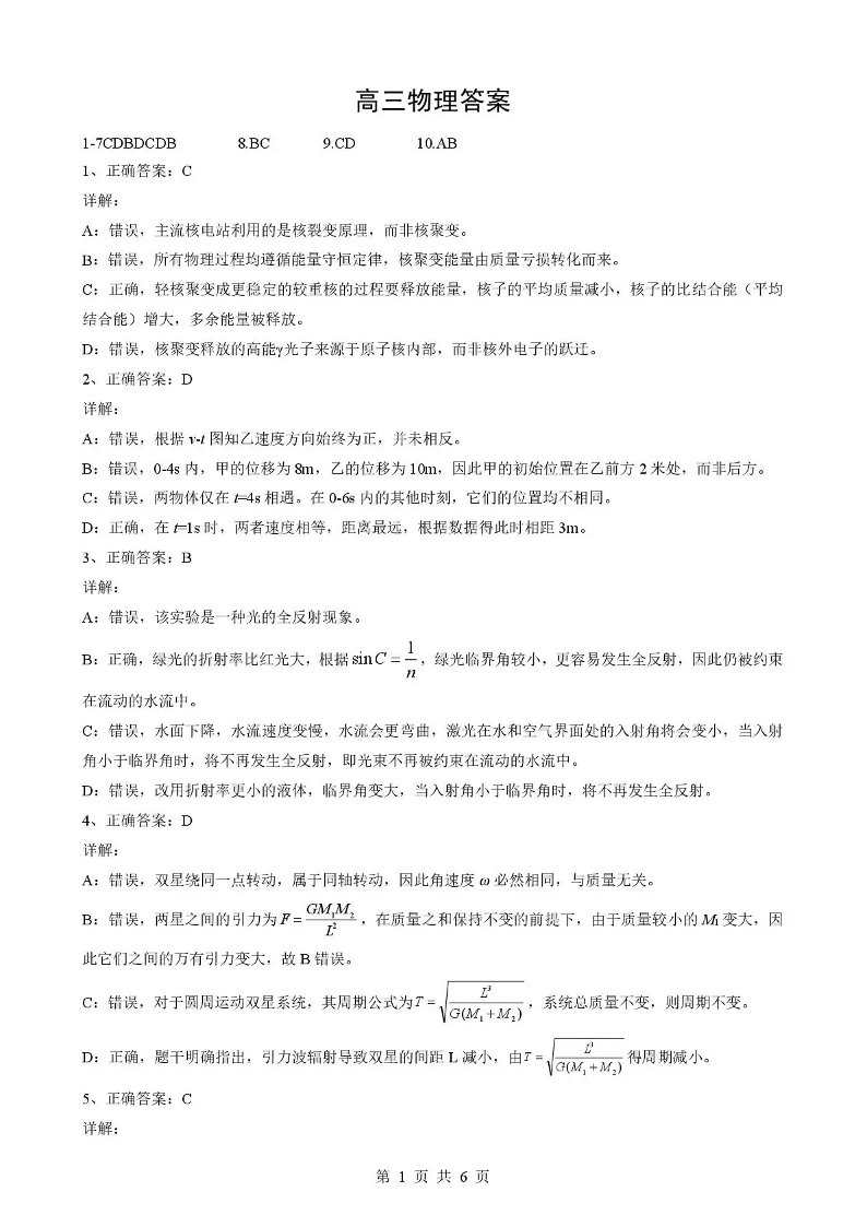 湖北省随州市2026届高三下学期二模考试 物理答案.pdf