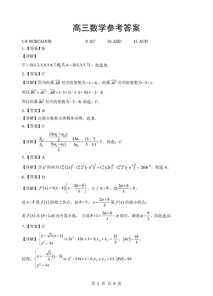 湖北省随州市2026届高三下学期二模考试 数学答案.pdf