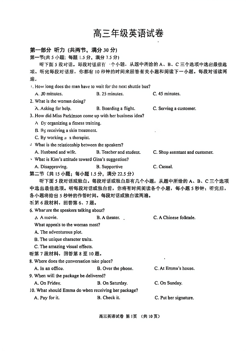 江苏省顶尖九校2026届高三年级联考 英语试题(含答案).pdf