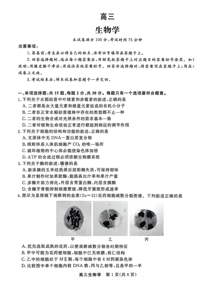 江苏省顶尖九校2026届高三年级联考 生物试题(含答案).pdf