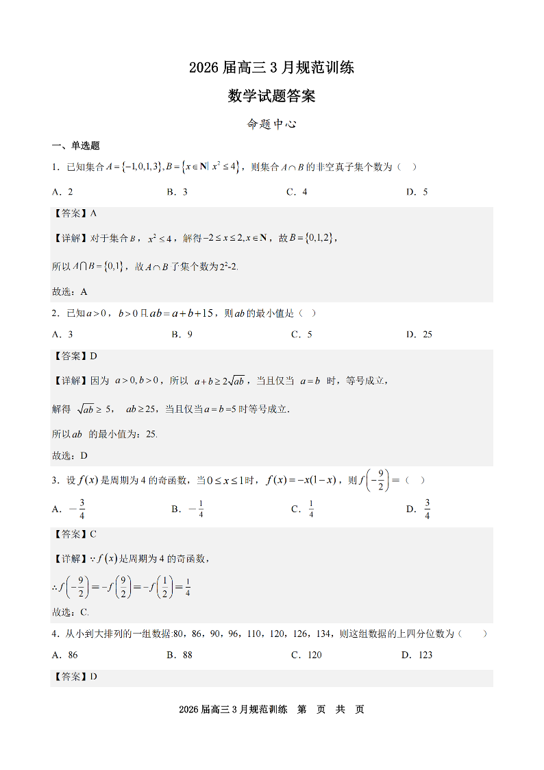 安徽省合肥市一六八中学2026届高三3月份规范训练 数学答案.pdf
