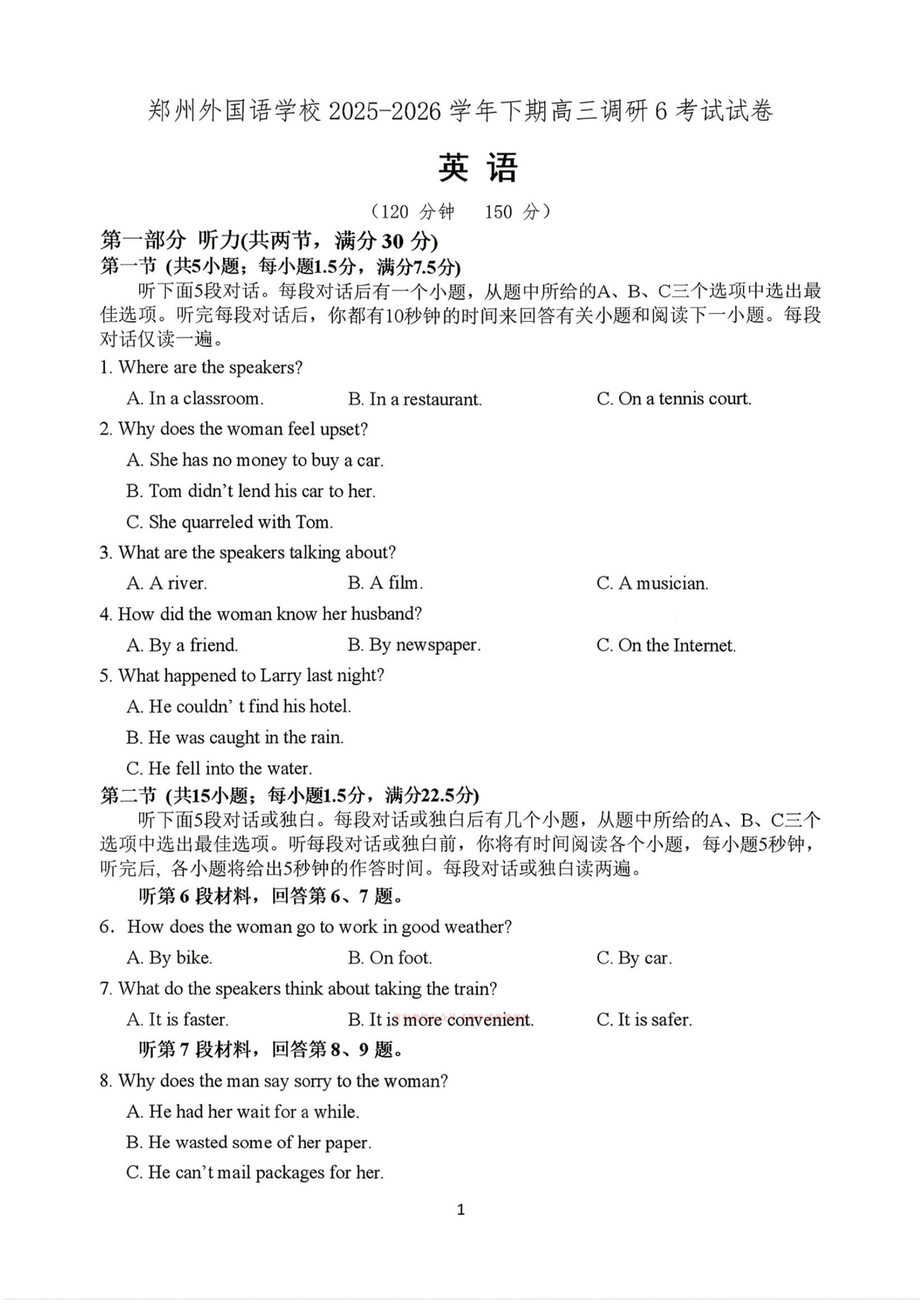 郑州外国语学校2025-2026学年下期高三调研6考试试卷 英语.pdf