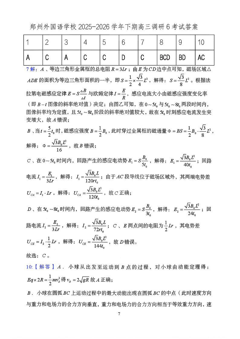 郑州外国语学校2025-2026学年下期高三调研6考试试卷 物理答案.pdf