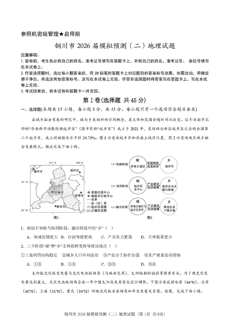 铜川市2026届模拟预测(二)地理试题(含答案).pdf