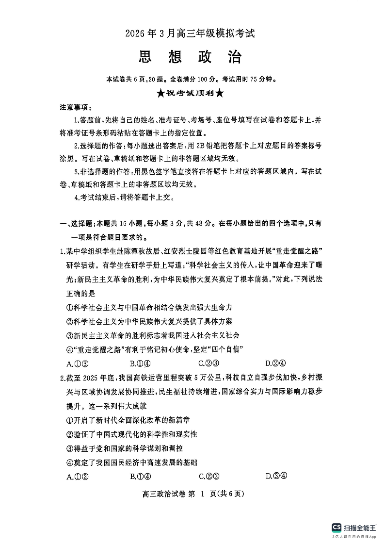 2026年3月高三年级模拟考试 政治.pdf