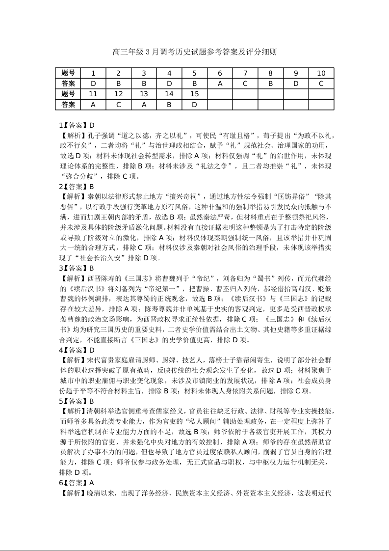 2026年3月高三年级模拟考试 历史答案.docx