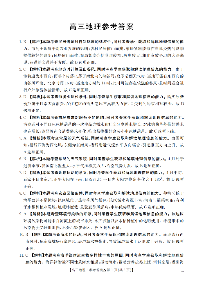 陕西省2026届高三下学期3月联考 地理答案.pdf