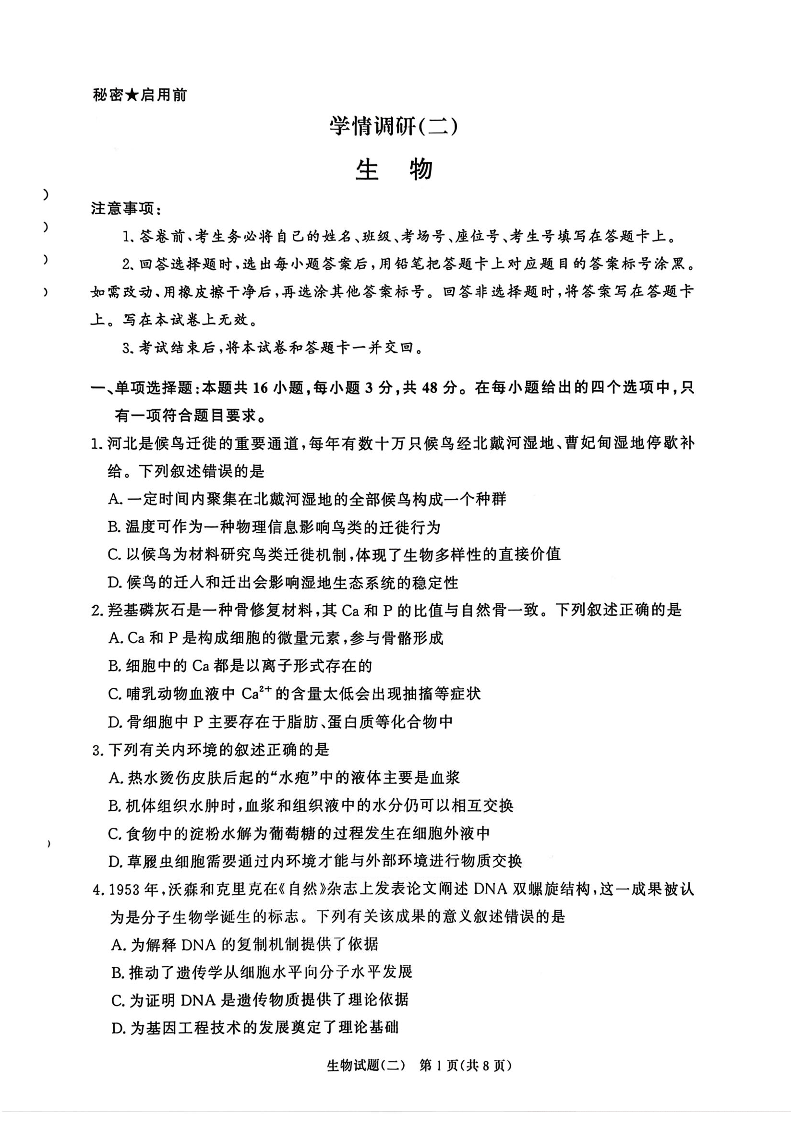 青桐鸣大联考2026届高三下学期学情调研(二)生物.pdf