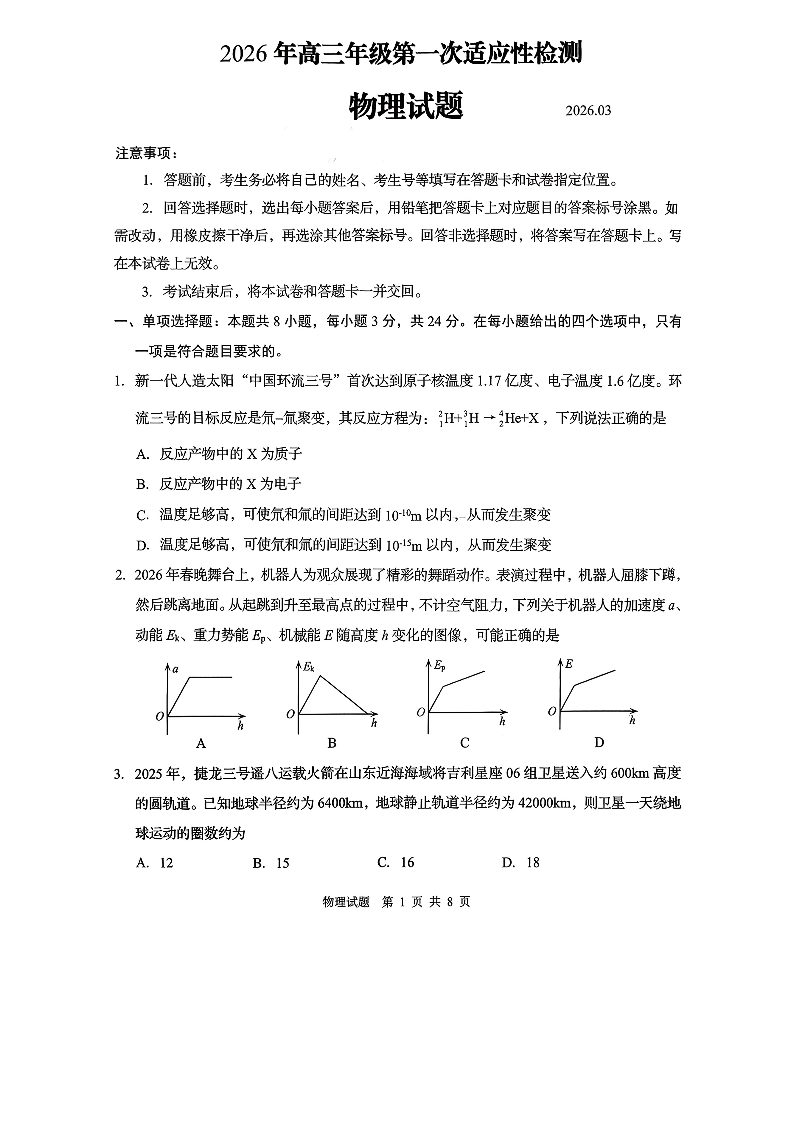 青岛市2026年高三年级第一次适应性检测 物理.pdf