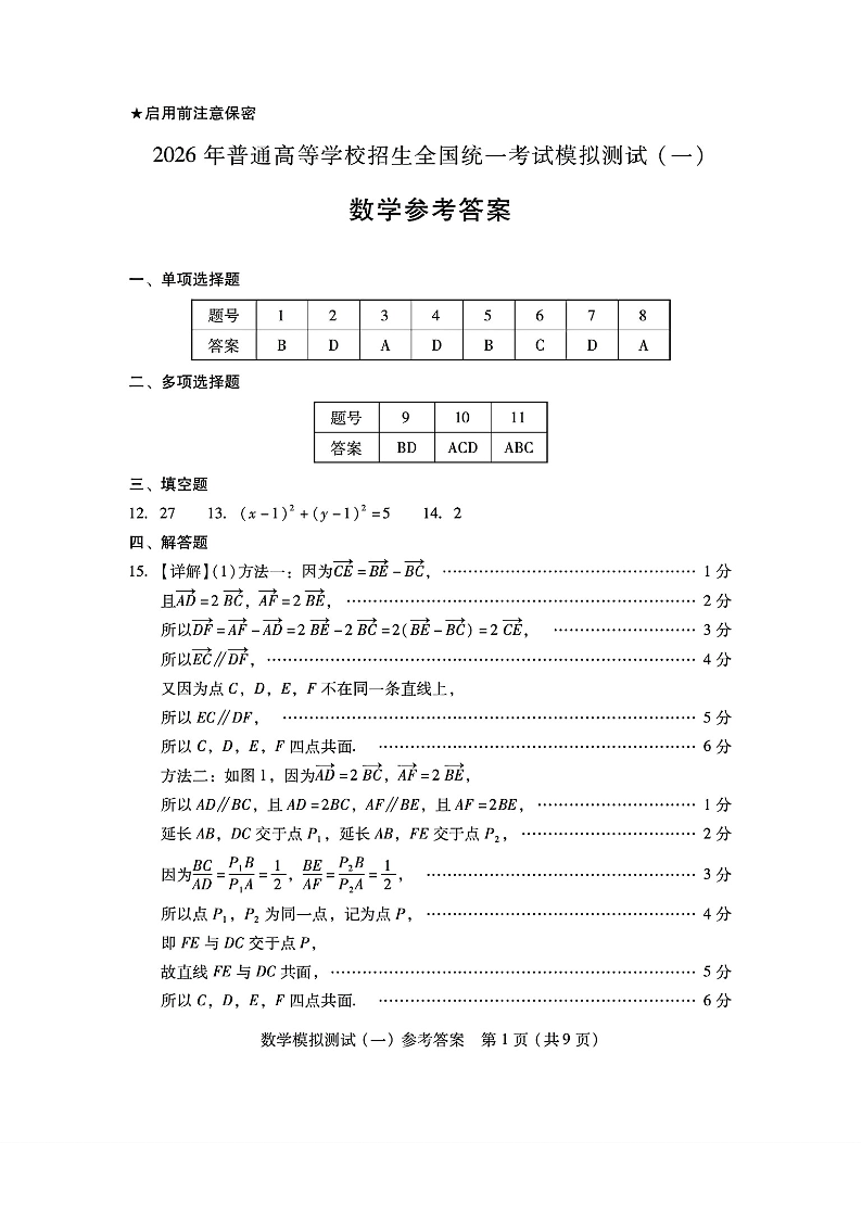 广东省2026年普通高等学校招生全国统一考试模拟测试(一)数学答案.pdf
