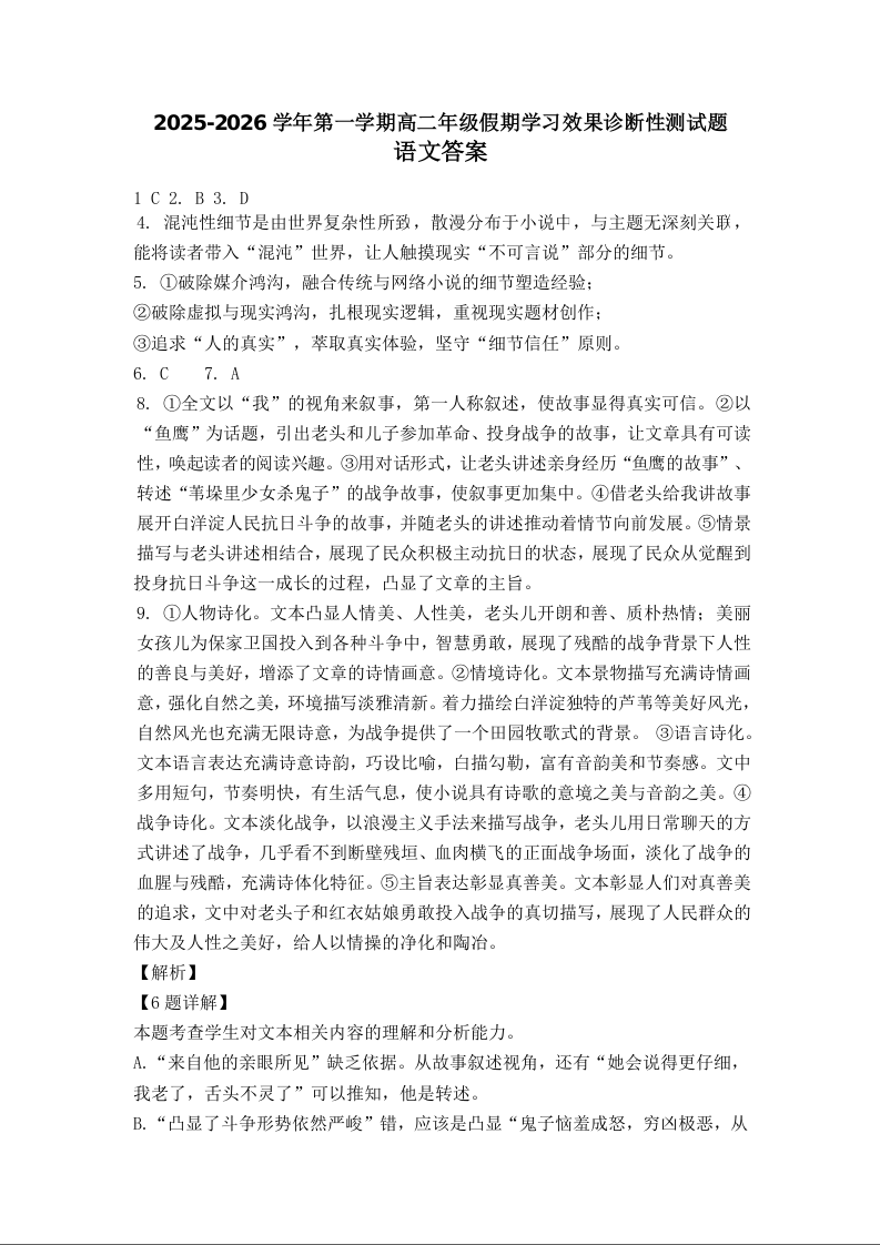 山西省阳泉市2025-2026学年高二第二学期开学检测 语文答案.docx