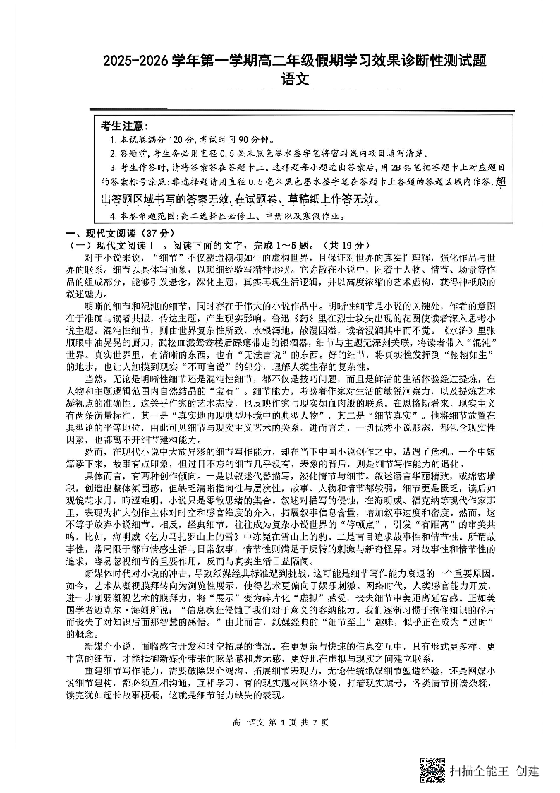 山西省阳泉市2025-2026学年高二第二学期开学检测 语文.pdf