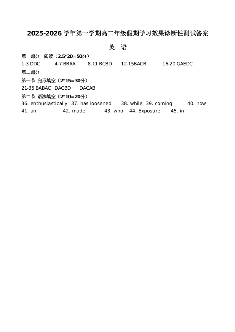 山西省阳泉市2025-2026学年高二第二学期开学检测 英语答案.docx