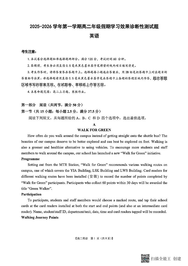 山西省阳泉市2025-2026学年高二第二学期开学检测 英语.pdf