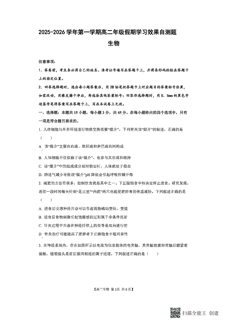 山西省阳泉市2025-2026学年高二第二学期开学检测 生物.pdf