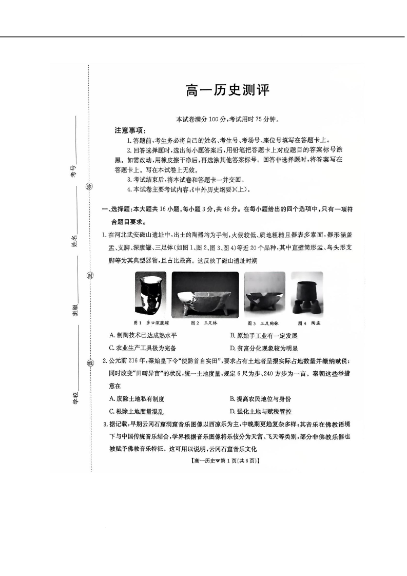 河北省邢台市卓越联盟2025-2026学年高一下学期开学测评 历史试题(含答案).docx
