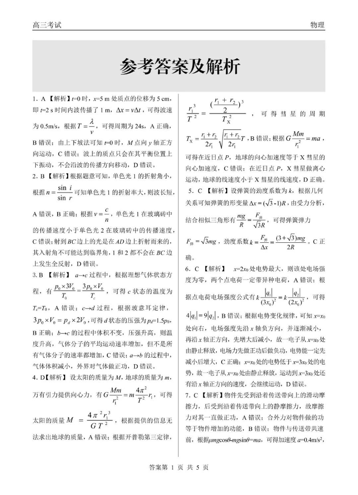 齐齐哈尔市2026届高三下学期第一次模拟考试 物理答案.pdf