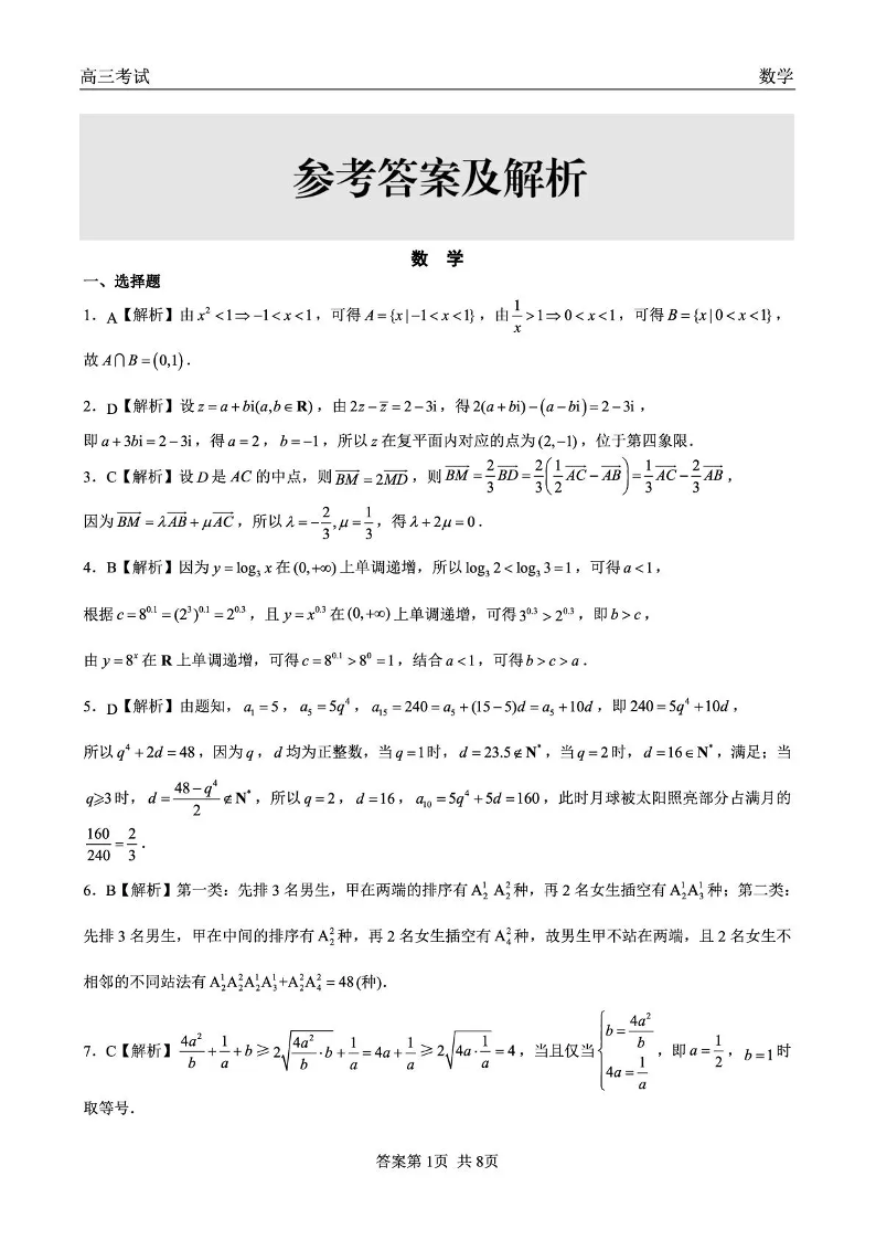齐齐哈尔市2026届高三下学期第一次模拟考试 数学答案.pdf